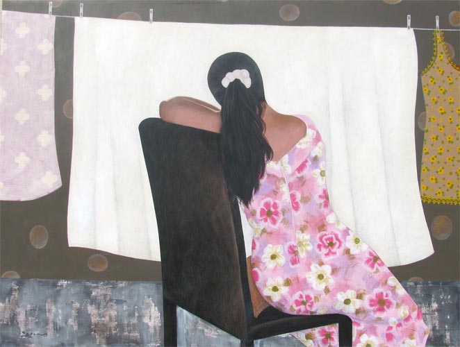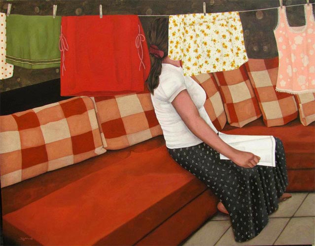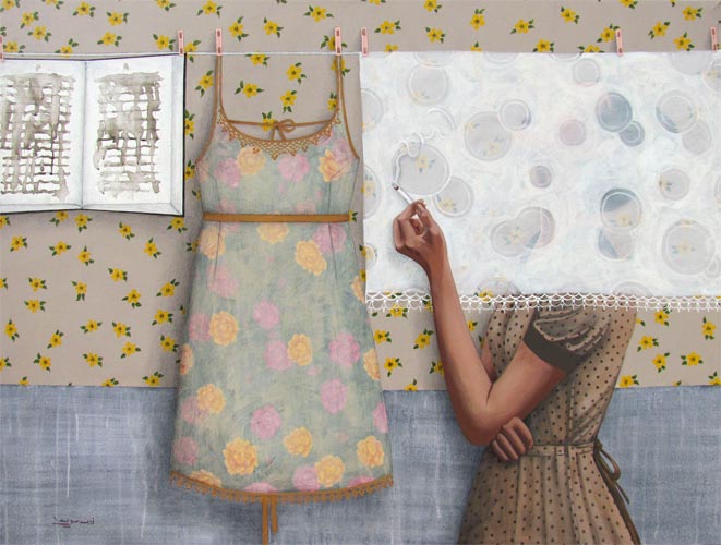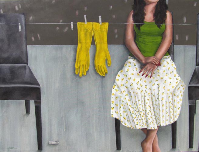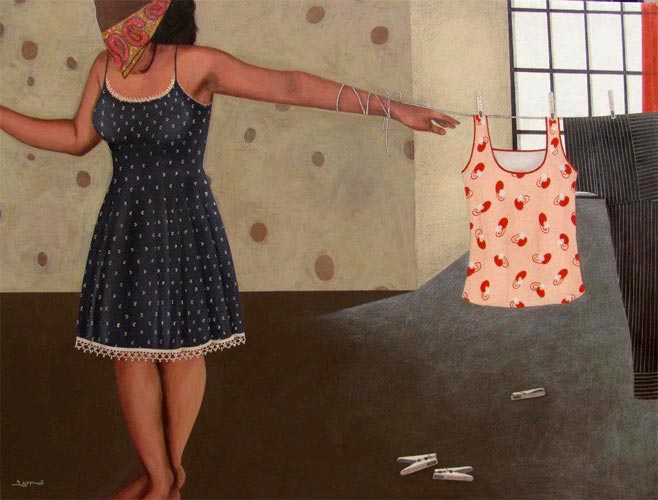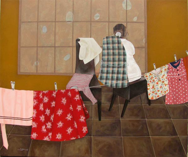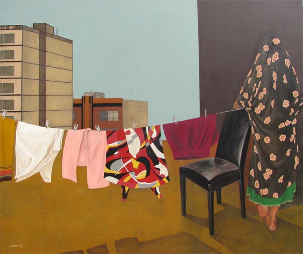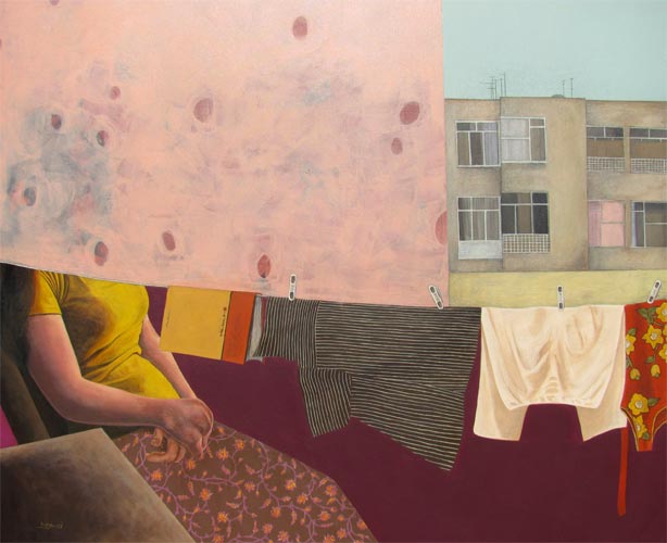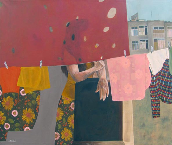 زن ..انزوا .. روزمرگی .. تکرار و اعتراضی پر از سکوت .. بند رختی که به تمام لایه های زندگیش پیچیده و گریز از آن دیگر شدنی نیست ..و سری که صورت و افکارش بی اهمیت است .. تنها تن اوست که دیده می شود .. و این چرخه بی پایان است